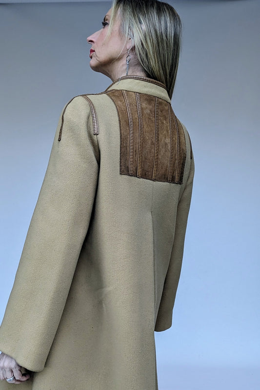 1970s Baccarat Camel Winter Wool Toggle Coat for Vogue Cambridge with Leather Trim