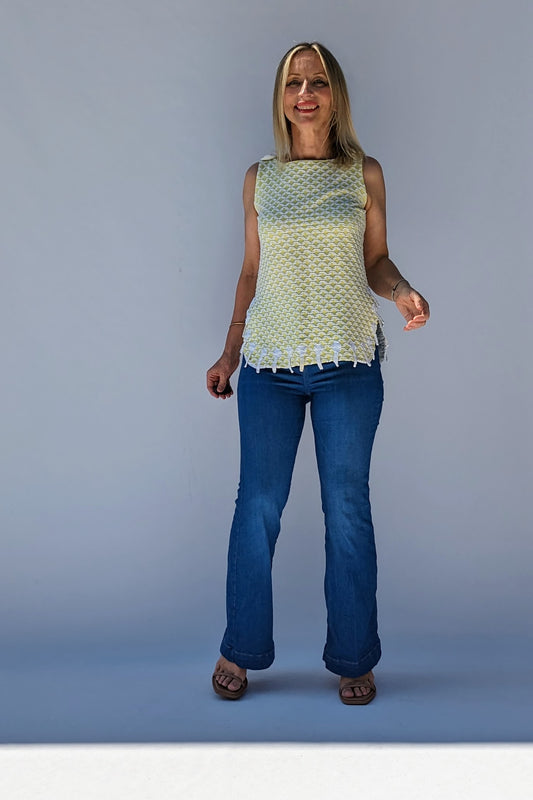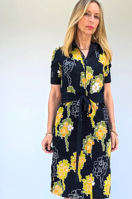 1960s Elinor Simmons for Malcolm Starr, Makoff Salt Lake City, Yellow Beaded Cocktail Dress