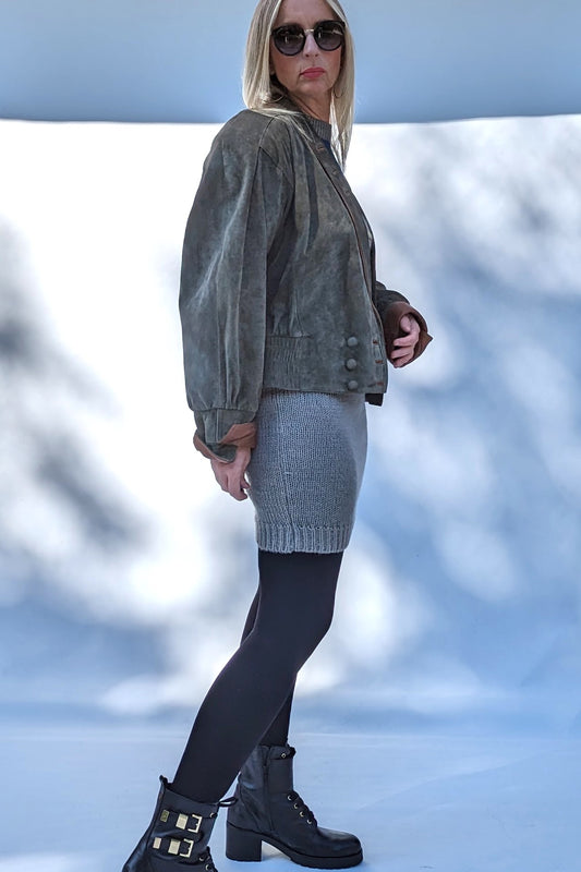 Khaki Grey Oversized Batwing Short Suede Jacket