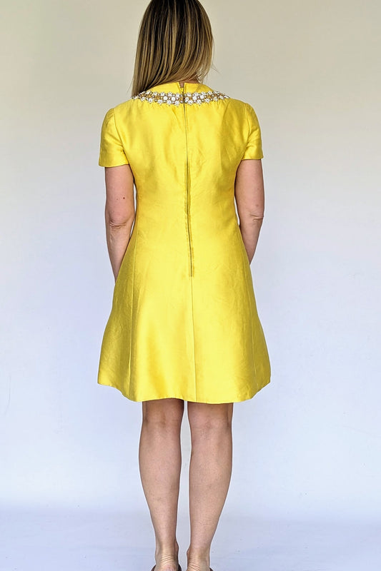 1960s Elinor Simmons for Malcolm Starr, Makoff Salt Lake City, Yellow Beaded Cocktail DressRegular price £130.00 GBPRegular priceUnit price / per£195.00 GBPSale price £130.00 GBPSale