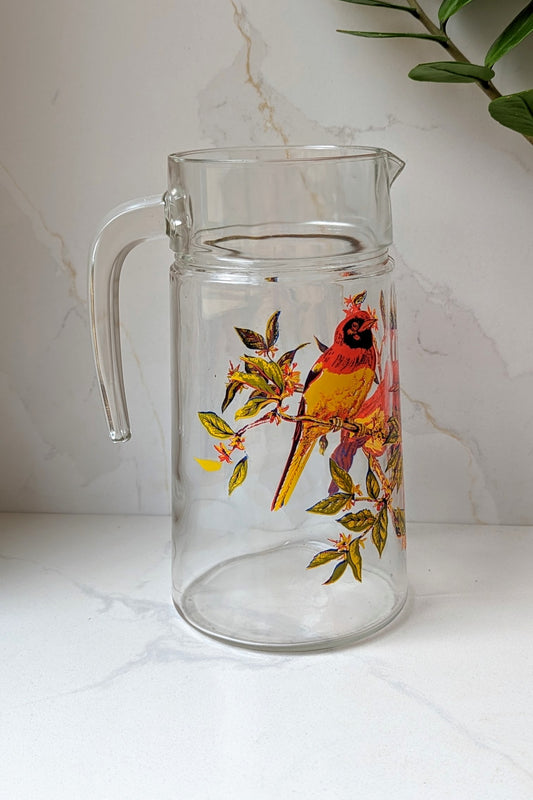 1970s Vintage French Kitsch Luminarc Birds Pitcher Jug
