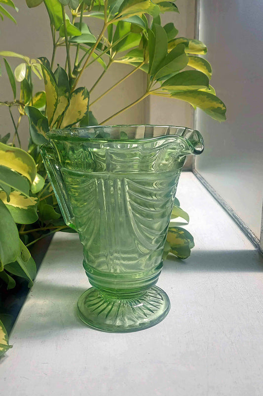 Vintage 1930s Sowerby Green Art Deco Pressed Glass Jug
