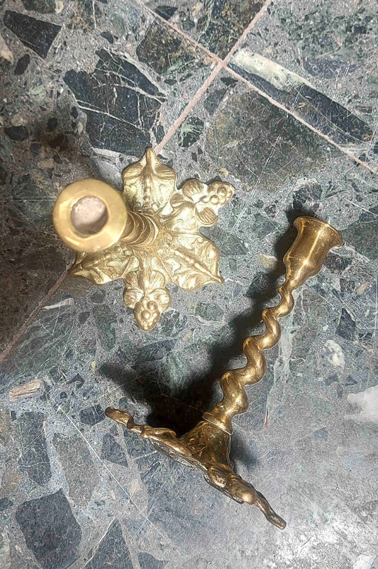 Small Pair Of Vintage Twisted Brass Candlestick Holders