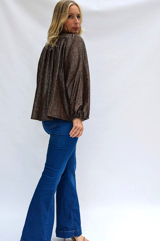 70s Vintage Richards Brown Shimmer Flared Evening Party Top